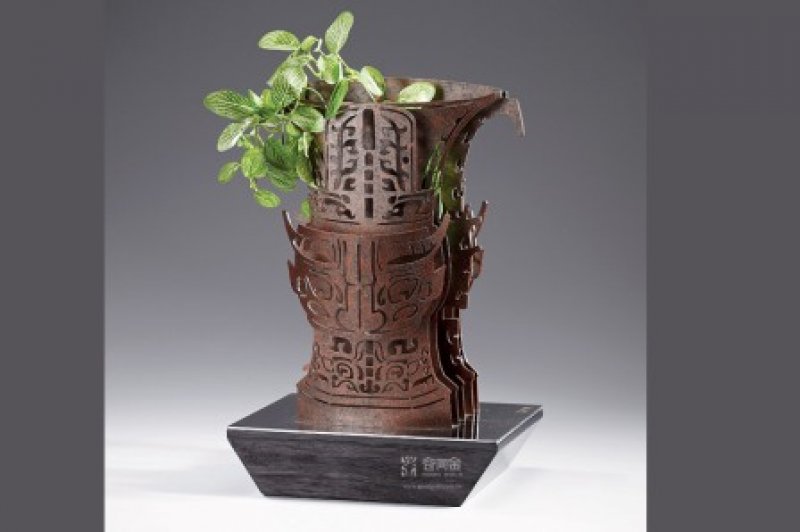Good Gold disassembled and reconstruct the ancient vessel with modern thought by display it with five layers of steel plates. This work is designed to be a large outdoor installation art. The vessel is wide-rimmed and tube-shaped which is popular in the early Western Chou period. The eyes, horns, ears, and fangs craved on the surface are vividly. The k’uei dragon pattern, curled-tail k’uei dragon pattern, and animal-mask pattern on the surface are made by special carving technique. The work is stately and domineering which reproduces the legend of three thousand years ago.