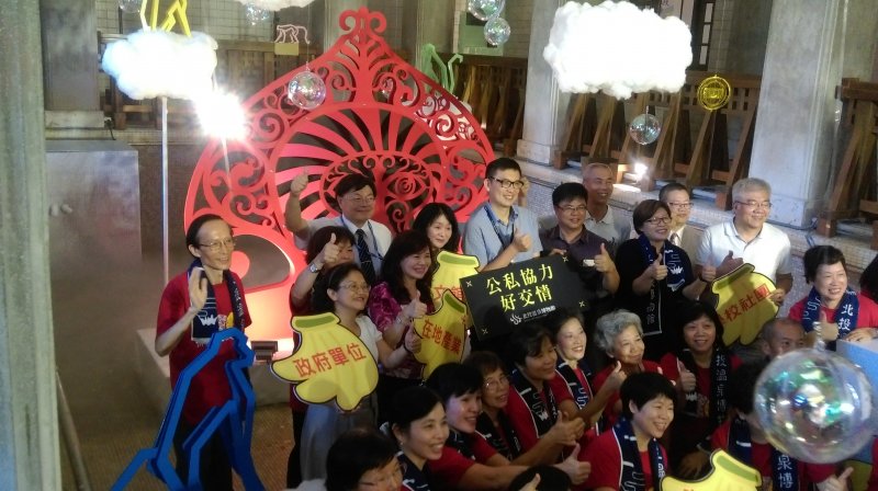 谷同金受邀在北投溫泉博物館十八週年慶活動中展出,在大、小浴池推出名為《浸北投.動物浴場》的藝術裝置,獻上猴力王、台灣水鹿、藍腹鷴、松鼠等動物,將氤氳繚繞的公共浴場變身為森林動物浴場。